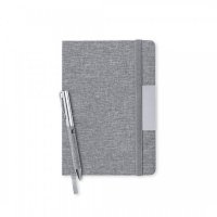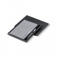 Laser Engrave, Pad Print, Screen Print: 70 x 160mm on the notebook cover, 15 x 50mm on the metal badge, and 30 x 6mm on the pen