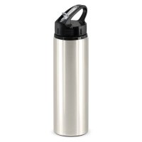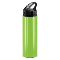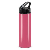 Vibrant BPA-free 750ml aluminium drink bottle which has a secure screw on lid with a flip out drinking valve and a carry handle. An optional black gift box is available on request. This product is not dishwasher safe and handwashing is recommended. Colours: Silver, White, Yellow, Orange, Pink, Red, Bright Green, Dark Green, Light Blue, Dark Blue, Purple, Black. Dimensions: Bottle: Dia 73mm x H 255mm. Gift box: H 295mm x W 76mm x 76mm.