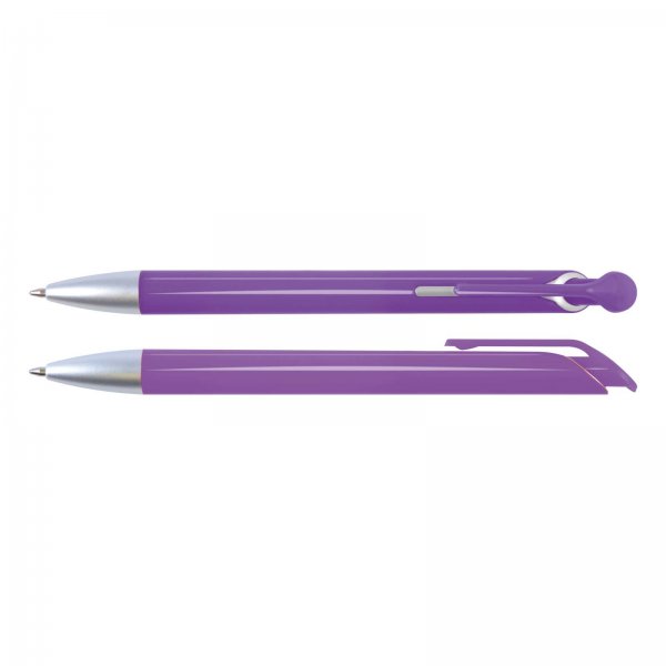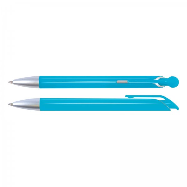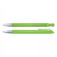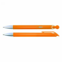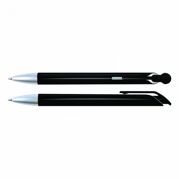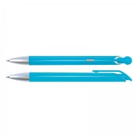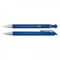 Gloss barrel push button ballpoint pen with matt silver tip. Writing distance: 2.1 kilometres. TC roller ball. Blue pigment ink.