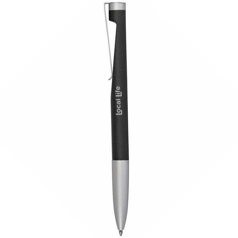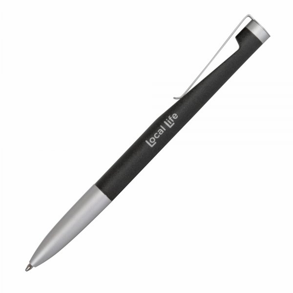 This twist pen has a unique stylish cut out design and a sand finish providing a great feel. Colour/s: Black / Silver.