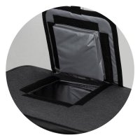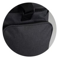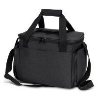 Quality 20L cooler bag made of durable 600D polyester material with water-resistant zippers to keep the contents of the bag dry and protected. A velcro hatch in the lid allows for easy access to the inside of the bag without opening it fully. The bag has thick PE foam insulation encased in a water-resistant PEVA inner liner and features an adjustable shoulder strap, a slip pocket and two side pockets, and carry handles with a velcro cuff. Colours: Charcoal Heather. Dimensions: Bag: H 270mm x W 325mm x Gusset 220mm (excludes handle and strap). Handle Length: 568mm. Strap Length (extended): 1245mm.