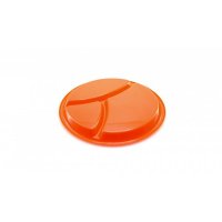 Starters tray in resistant PP in varied colors with 3 divided compartments. Colours: Blue, Orange, Red, White. Dimensions: 2 x 25.5 cm.