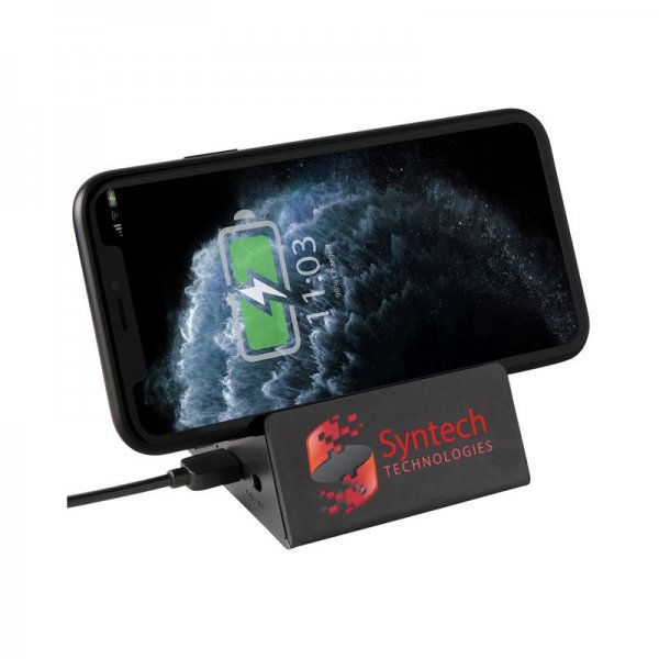 Peak Music combines the wireless features of both a phone charger (5 Watt) and a Bluetooth speaker (3 Watt) into one versatile desktop item. Listen to music or keep an eye on social media then simply connect the speaker to any 5 Volt (DC) power source to start charging your smart phone. Peak Music includes Foreign Object Detection (FOD) protection and is compatible with any smart phone meeting the Qi wireless charging standard (e.g. iPhone 8, iPhone XR, Samsung S10). Includes micro USB charge cable and user manual. Colours: Black. Dimensions: 112 x 83.5 x 76 mm.