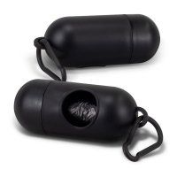 Handy pet waste bag dispenser made from polypropylene with a useful clip for attaching to bags, collars and leads. The dispenser features a pop-open lid and includes 15 waste bags made from polyethylene. Colours: Black, White. Dimensions: Dia 41mm x L 104mm (excludes clip).