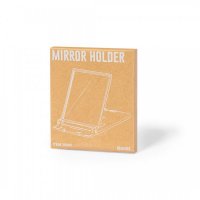 Smartphone and tablet holder with mirror, made in durable ABS. Including 2 silicone anti-slip pads and 6 positions. Compact and foldable design to be taken anywhere. Available in a wide range of colours. Presented in a kraft design box. Colours: Black, Red, Royal Blue, White. Dimensions: 7cm x 8cm x 10cm.