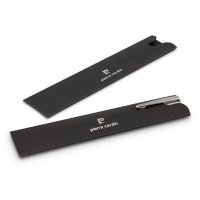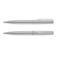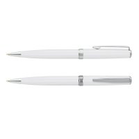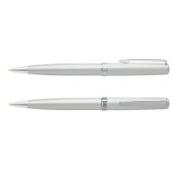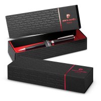 Timeless, classically designed brass ball pen with a silky smooth twist action and shiny chrome accents. The barrel is finished in the choice of lacquered black which engraves to a silver mirror finish or electroplated shiny chrome and matt silver which both engrave to a silver natural etch. Calais has a black large volume refill with 4000 metres of German manufactured Dokumental ink and a tungsten carbide ball for improved writing quality. It features the Pierre Cardin logo tastefully engraved on the centre ring and can be presented in an optional Pierre Cardin sleeve or Pierre Cardin gift box. Colours: Chrome, Matt Silver, White, Navy Black. Dimensions: Dia 11mm x L 135mm x 14mm (includes clip).