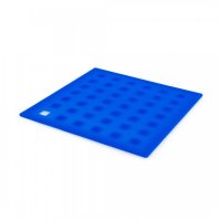Flexible, brightly colored silicone table mat with non-slip reinforced surface and hanging die-cut. Colours: Blue, Green, Orange, Red, Yellow. Dimensions: 17.3 x 17.3 x 0.4 cm
