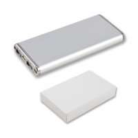 8000 mAh portable charger with A Grade Li-Po battery that can recharge from a USB port. Capacity to recharge most phones on the market multiple times and full charge for tablets. 2 USB ports to charge 2 devices at the same time. Gift boxed with 3 in 1 connector to use with most current mobile devices on the market. EVA black zippered pouch available at additional cost. Colours: Black, Silver. Dimensions: 141 x 14 x 60mm (LxHxD). Box - 143 x 26 x 92mm (LxHxD).