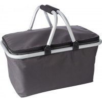 Polyester (320-330 gr/m²) collapsible, cooler shopping basket, lined with foil on the inside. Aluminium frame and handles with EVA foam grip; can be closed at the top with a zipper. Colours: Cobalt Blue, Grey, Red. Dimensions: 46.0 (L) x 27.5 (W) x 24.0 (H) cm.