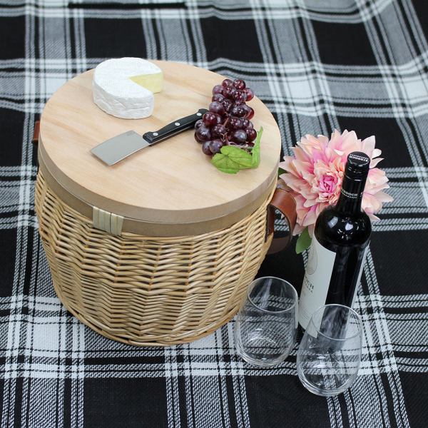 The perfect companion for any picnic or party. The handmade basket includes internal insulated lining with a zippered cover. The timber board is made from lacquered pine wood and the basket is supplied with one shoulder strap. Not recommended as a cheese board. Grain pattern varies with each item. The baskets are handmade, and each piece will vary slightly in size and shape with slight imperfections, giving the basket the natural timber look. Main compartment capacity is approximately 25 litres. Colours: Natural. Dimensions: 320mm(w) x 270mm(h) x 290mm(d).