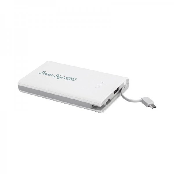 Digi Power 8000 is a high capacity power bank featuring dual USB output, built-in cable with Micro USB output, iOS adaptor, LED charge indicator, protection circuitry to stabilise the output voltage and prevent over charging or short circuit. Suitable for charging most electronic devices including android and iOS smart phones and tablets. Includes Micro USB charge cable, iOS adaptor and user manual. Colour: White. Dimensions: 147 x 76 x 13 mm.