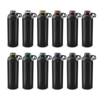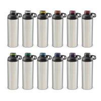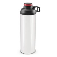 Large 900ml stainless steel drink bottle which has a secure screw on lid with a flip cap that has the option of adding a smart resin coated logo on the top. The lid also has a carry handle and a silicone outer ring for improved grip. Primo is BPA-free and has a wide opening which is ideal for adding ice cubes or fruit for flavouring. The black and white bottles laser engrave to a shiny steel finish and the silver bottle engraves to a natural etch. This product is not dishwasher safe and handwashing is recommended. Dimensions: Dia 79mm x H 260mm x 105mm.