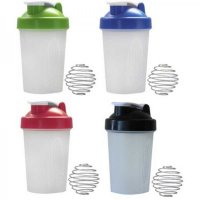 400ml HDPE shaker with mixer with 304# high grade stainless steel wire ball. BPA FREE and Dishwasher Safe. Colours: Black, Blue, Green, Red. Dimensions: 16.5cm(h) x 9.5 diameter.
