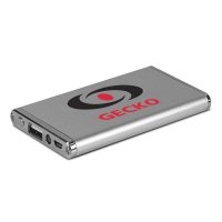 Thin 4000mAh power bank with a smart aluminium finish and shiny chrome accents. The input power is 5V/1 Amp and the output power is 5V/1 Amp. It has a handy flashlight and can be recharged in 5-6 hours from a USB port or a mains adapter. Comprehensive instructions and a Micro-B USB cable are included. An optional EVA carry case and a triple connector cable are available on request. Pulse laser engraves to an oxidised white colour. Colours: Power Bank: Silver. Carry Case: Black.