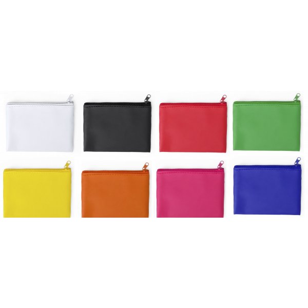 Coin purse in soft PU leather and in a wide range of bright tones. With matching colour zipper and inner keyring. Colours: Black, Blue, Fuchsia, Green, Orange, Red, White, Yellow. Dimensions: 10.5 x 7.5 x 0.5 cm.