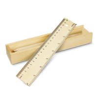 Set of eight unpainted wood colouring in pencils, a pencil sharpener and an eraser in a natural wood box. The box has a sliding lid which doubles as a ruler with metric and imperial graduations. Wood is a natural material which produces unavoidable variances in the grain pattern, colour and branding. Colours: Natural. Dimensions: W 211mm x H 42mm x 30mm.