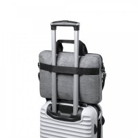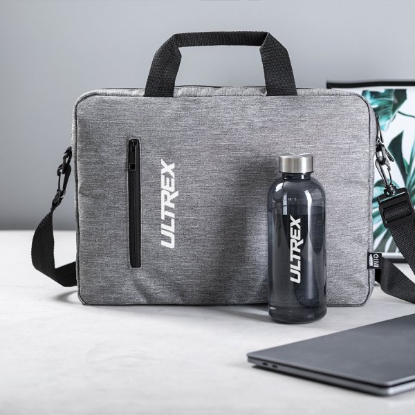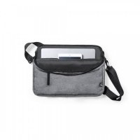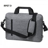 Elegant nature line document bag in resistant 600D RPET melange effect with black details. Includes padded interior compartments to fit computers up to 15 inches and tablets up to 10 inches, zipped outer pocket, adjustable shoulder strap and reinforced handles. Colours: Grey/Black. Dimensions: 38 x 28 x 5 cm, 250 gram