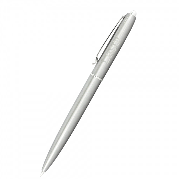 This recycled stainless steel ballpoint pen is practical for the office, studying or work from home. Colours: Silver. Dimensions: 12mm(w) x 140mm(h).