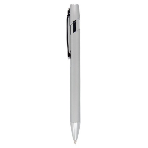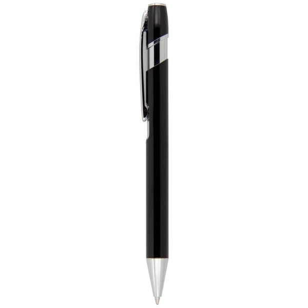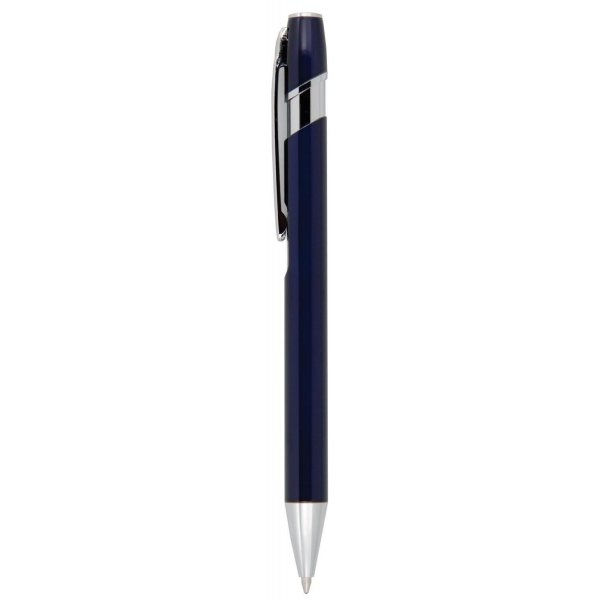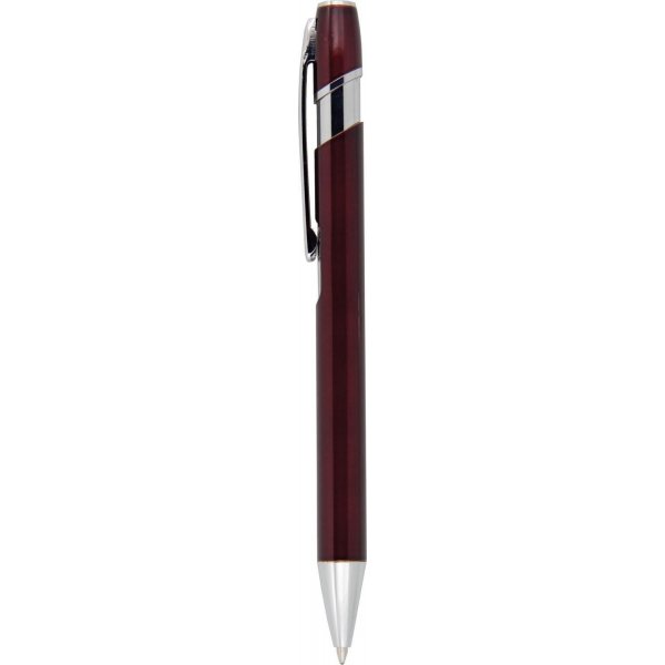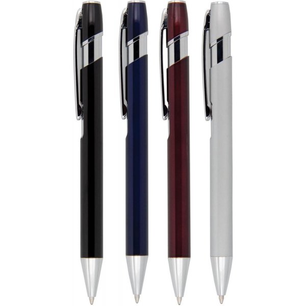 Chic push action ball pen with shiny trim. Parker style black refill. Colours: black, blue, red, silver.