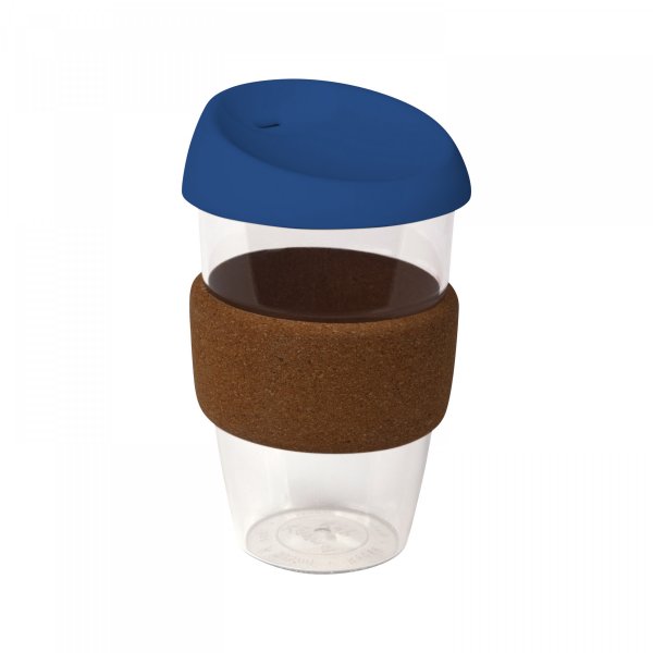 Clear Plastic Karma Kup with Cork Band, Silicon Lid, light, durable. Do not microwave or use in microwave oven. It is not safe for use in dishwasher.