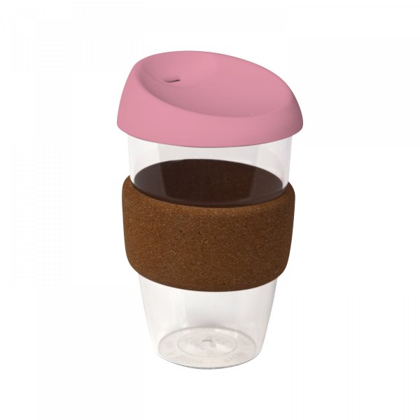 Reusable Acrylic Karma Kup Pink with Cork Band, Silicon Lid (G1968) 16oz/535ml