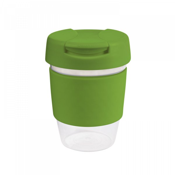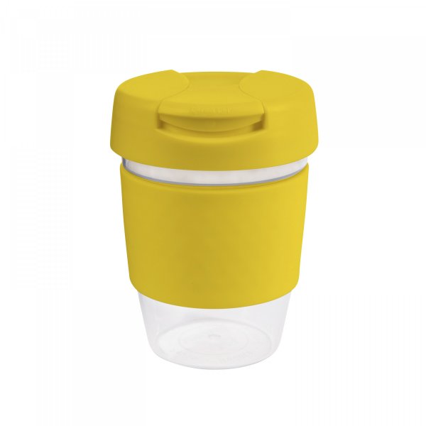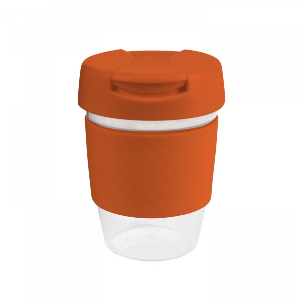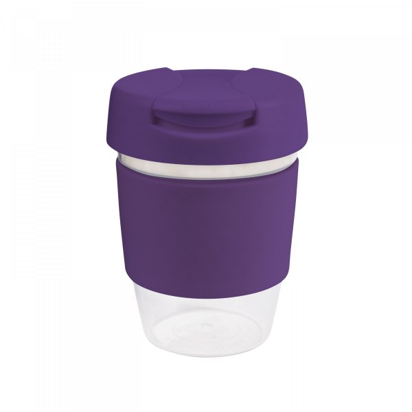 Roma 12oz Clear Plastic Karma Kup made from high-quality AS plastic. A very sturdy and stylish solution to enjoying your everyday cuppa. Available in 12oz/340ml with various coloured bands and lids mix and match options. Size: 80mm dia x 140mm. Band size: 240 x 55mm. Individual Box 12cm Height, 8.2cm Width, 8.2cm Deep.