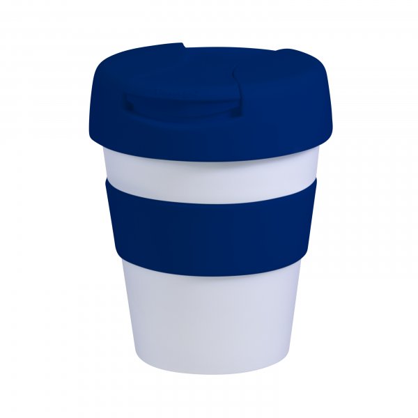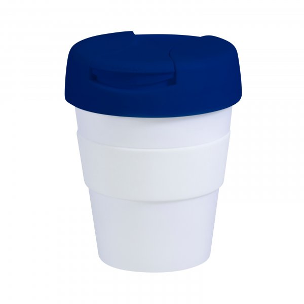 Reusable Eco Cup Karma Kup White Navy with Flip Closure (G1960) 320ml/11oz