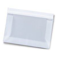 Handy reusable pouch for storing items such as food, passports, phones, or any tech accessories. The pouch is manufactured from vinyl with a sturdy zip-lock closure. Colours: White/Clear. Dimensions: W 205mm x H 154mm x Gusset 56mm.