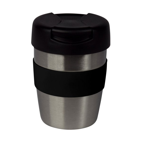 A sturdy, stylish solution to enjoying your everyday cuppa, this reusable cup is made from high-quality stainless steel. Mix and match with 3 cup colours and 11 band colours to choose from, cups come with a black plastic lid with flip closure. Size: 80 dia x 140mm. Band size: 240 x 55mm.