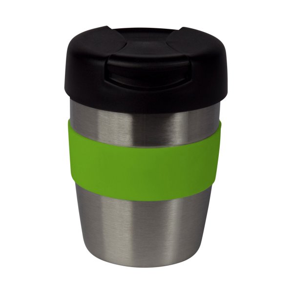 A sturdy, stylish solution to enjoying your everyday cuppa, this reusable cup is made from high-quality stainless steel. Mix and match with 3 cup colours and 11 band colours to choose from, cups come with a black plastic lid with flip closure. Size: 80 dia x 140mm. Band size: 240 x 55mm.