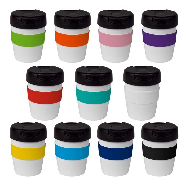 A sturdy, stylish solution to enjoying your everyday cuppa, this reusable cup is made from high-quality stainless steel. Mix and match with 3 cup colours and 11 band colours to choose from, cups come with a black plastic lid with flip closure. Size: 80 dia x 140mm. Band size: 240 x 55mm.