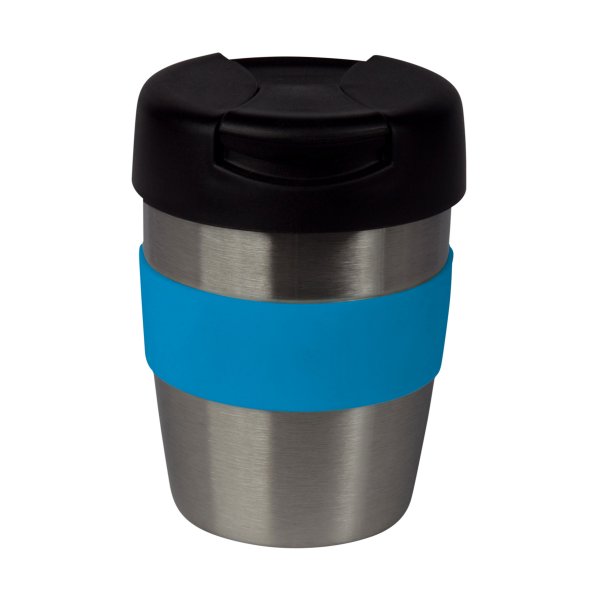A sturdy, stylish solution to enjoying your everyday cuppa, this reusable cup is made from high-quality stainless steel. Mix and match with 3 cup colours and 11 band colours to choose from, cups come with a black plastic lid with flip closure. Size: 80 dia x 140mm. Band size: 240 x 55mm.