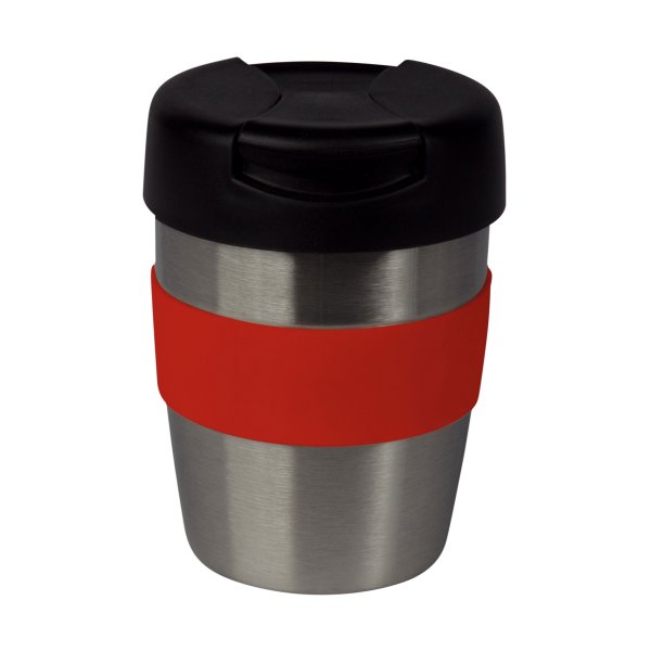 A sturdy, stylish solution to enjoying your everyday cuppa, this reusable cup is made from high-quality stainless steel. Mix and match with 3 cup colours and 11 band colours to choose from, cups come with a black plastic lid with flip closure. Size: 80 dia x 140mm. Band size: 240 x 55mm.
