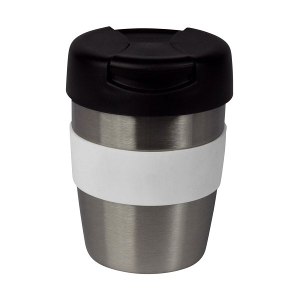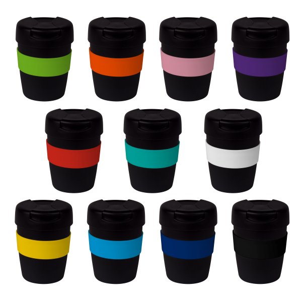 A sturdy, stylish solution to enjoying your everyday cuppa, this reusable cup is made from high-quality stainless steel. Mix and match with 3 cup colours and 11 band colours to choose from, cups come with a black plastic lid with flip closure. Size: 80 dia x 140mm. Band size: 240 x 55mm.