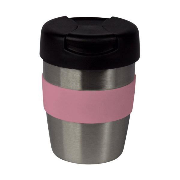A sturdy, stylish solution to enjoying your everyday cuppa, this reusable cup is made from high-quality stainless steel. Mix and match with 3 cup colours and 11 band colours to choose from, cups come with a black plastic lid with flip closure. Size: 80 dia x 140mm. Band size: 240 x 55mm.