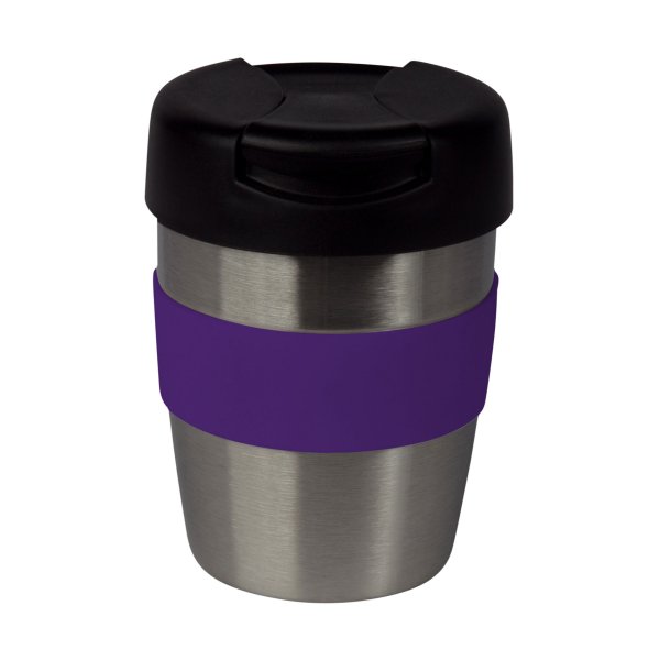 A sturdy, stylish solution to enjoying your everyday cuppa, this reusable cup is made from high-quality stainless steel. Mix and match with 3 cup colours and 11 band colours to choose from, cups come with a black plastic lid with flip closure. Size: 80 dia x 140mm. Band size: 240 x 55mm.