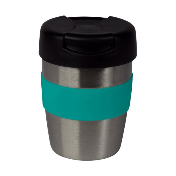 A sturdy, stylish solution to enjoying your everyday cuppa, this reusable cup is made from high-quality stainless steel. Mix and match with 3 cup colours and 11 band colours to choose from, cups come with a black plastic lid with flip closure. Size: 80 dia x 140mm. Band size: 240 x 55mm.