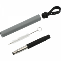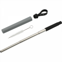 The Reusable collapsible straw is made of a food-grade stainless steel material with a silicone tip for safety. Stainless straw longest length is 8.62 in. including silicone tip. Brush length: 3.54 in. This Eco-friendly straw is durable and easy to clean and its use reduces plastic waste. The Wheat Straw tube features over 50% wheat straw barrel mixed with plastic. Hand wash only and follow any included care guidelines. Colours: Beige, Charcoal, Grey. Dimensions: 153mm (H) x 13mm (W) x 13mm (D).