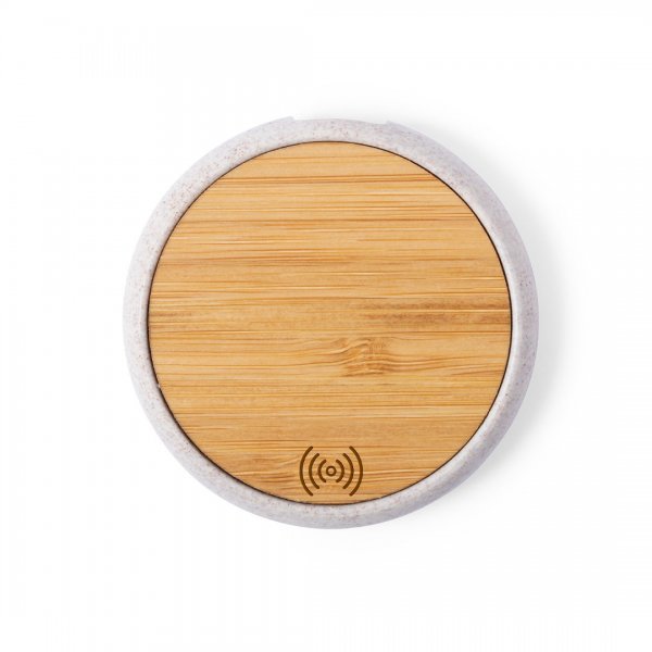 Wireless charger with a circular design. Charging surface in bamboo and shell made of wheat straw, in order to encourage the use of natural raw materials and reduce contaminant emissions. Led indicator, including micro USB charging cable and compatible with devices equipped with wireless charging technology. Safety protection to avoid overheating, overcharging and short-circuiting. Presented in an attractive biodegradable box of nature design. Wireless. Cable Included. Colours: Nature. Dimensions: 1.1 x 6cm - 30 grams.