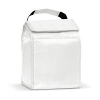 Small 3.5L cooler bag which is ideal for carrying lunch and a drink. It is manufactured from 210D polyester with aluminium foil laminated foam insulation. Other features include a woven carry handle, a Velcro top closure and an external slip pocket. Colours: White, Yellow, Orange, Red, Bright Green, Royal Blue, Black. Dimensions: H 240mm x W 175mm x Gusset 125mm (excludes handle). Handle Length: 230mm.