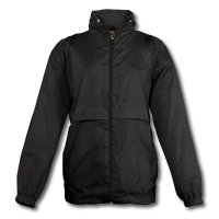 Lightweight unlined children’s wind breaker which is a larger fit to accommodate the layers underneath. It is manufactured from 210T polyester and is showerproof and wind-resistant. The jacket has a full zippered front and a high collar which includes a stowaway elasticated hood. The waist can be adjusted using drawstrings for added protection from the elements. Other features include zippered side pockets and elastic cuffs. The surf windbreaker is available in five sizes. Colours: Black. Sizes: 6Y, 8Y, 10Y, 13Y, 16Y.