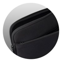 Cultivated device sleeve made to fit laptops and tablets up to 16 inches. The Neoprene material gives devices extra cushioned protection. It features a front pocket with a matte black metal zip puller and top opening. Colours: Black. Dimensions: W 400mm x L 280mm x 25mm, 4mm thickness (2mm front pocket).