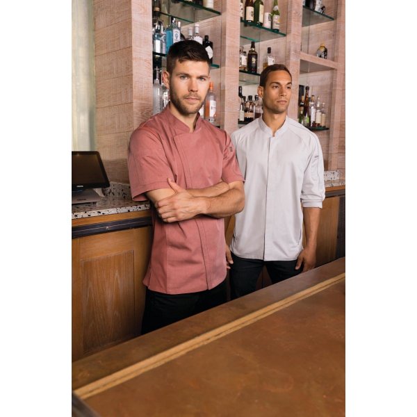 The classic everyday jacket gets an upgrade for 2017 with the unveiling of five new colors. A lightweight, go-anywhere Jacket, the Springfield is the quintessential workhorse for your chef de cuisines, sous chefs, and line cooks. A short-sleeve staple, this Jacket features Cool Vent side paneling, dual sleeve pockets, a zip-up front, side seam slits and a back collar snap tab to hold your apron securely in place.