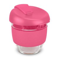 Elegant 250ml reusable borosilicate glass coffee cup with a secure push on plastic lid with silicone seal and a wide heat-resistant silicone band. Borosilicate is lightweight, exceptionally strong and shatter-resistant. It is a BPA-free choice for a clean, pure taste and is a natural alternative to single-use paper cups. The lid and band can be mixed and matched in any colour combination from the standard colours at no extra cost. Up to five different colour combinations are included in the price and more are available for an additional charge. Stellar Cup is presented in an unbleached cardboard gift box with a window to show the branding and product care instructions are printed on one side. An optional gift tube is available on request. This product is not dishwasher safe, and handwashing is recommended. Stellar Cup is protected under New Zealand Design Registration No. 428176 and Australian Design Registration No. 202016235. Colours: Natural, Grey, White, Yellow, Orange, Pink, Red, Bright Green, Dark Green, Teal, Light Blue, Royal Blue, Dark Blue, Navy, Purple, Black. Dimensions: Dia 97mm x H 115mm.