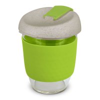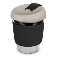 Design inspired 350ml reusable coffee cup that has an incredible story to tell. Manufactured from borosilicate glass, it has a heat-resistant silicone band and a secure push on Natura lid which is manufactured from a 50/50 blend of natural rice husk fibre and BPA-free polypropylene, with a silicone seal. The flip closure and band can be mixed and matched in any colour combination from the standard colours. Up to five different colour combinations are included in the price and more are available for an additional charge. An optional black gift box is available on request. This product is not dishwasher safe, and handwashing is recommended. Stellar Cup is protected under New Zealand Design Registration No. 428176 and Australian Design Registration No. 202016235. Dimensions: Dia 97mm x H 137mm.