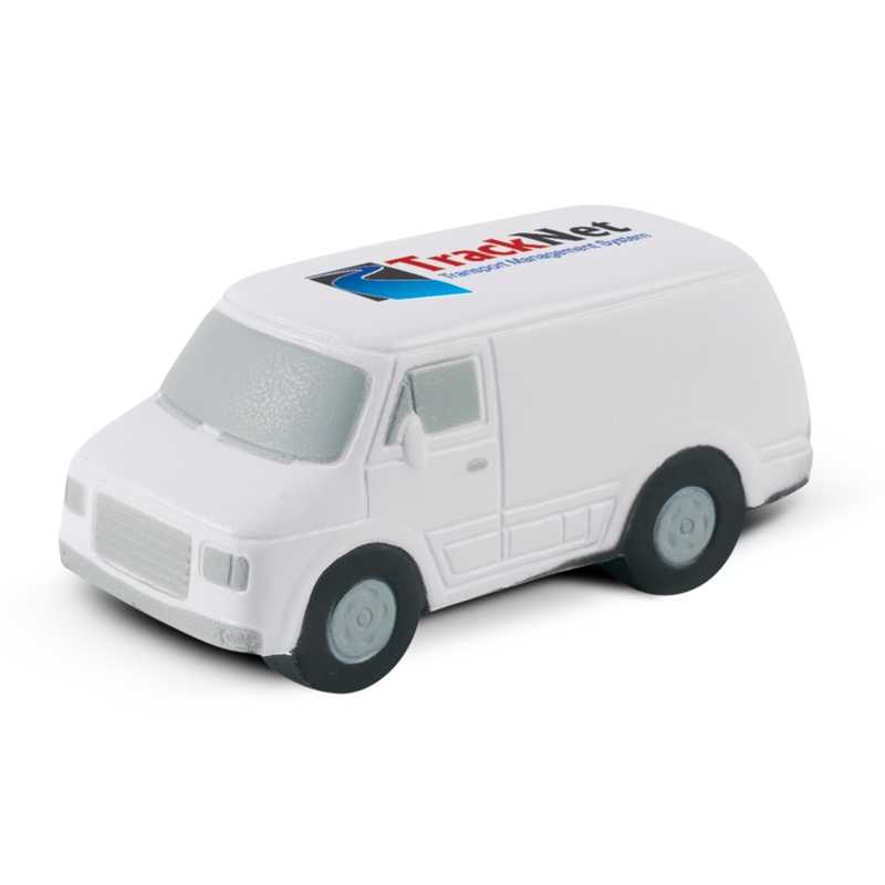 Van shaped squeezable stress reliever made from soft polyurethane.