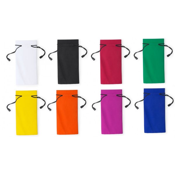 Eyewear cleaning cloth cover in soft polyester and in a wide range of fun colors with self-closing laces. Colours: Black, Blue, Green, Fuchsia, Orange, Red, White, Yellow. Dimensions: 9 x 18 cm.