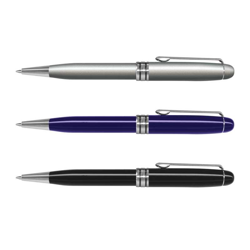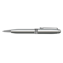 Twist action brass barrel ball pen with a lacquered barrel and shiny chrome accents. It has a black TRENDS large volume refill with 3000 metres of German manufactured DOKUMENTAL ink and a tungsten carbide ball for improved writing quality. Blue ink is available for an additional charge and the upper barrel laser engraves to a mirror finish. Supreme can be presented in an optional velvet sleeve or a gift box.