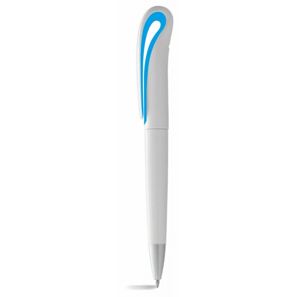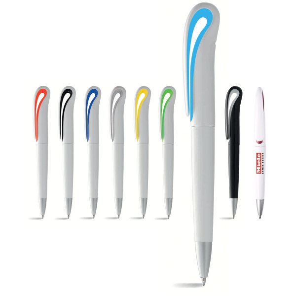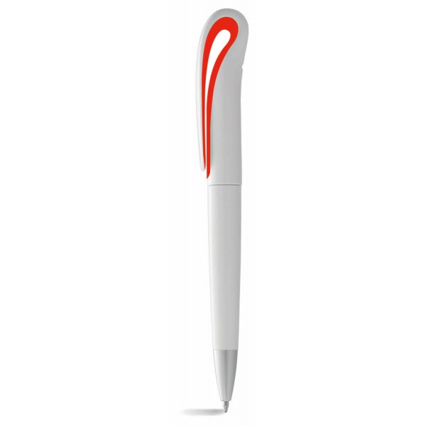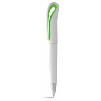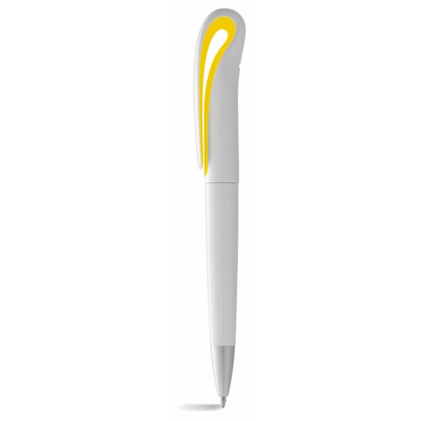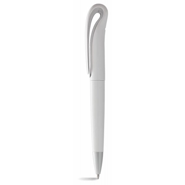 Twist action ballpoint pen with styled clip. White barrel with contrasting colour under the clip and silver tip. Also available in style P2006 with a coloured barrel. Size: 146 x 13mm. Colours: red, lime, black, cyan, blue, silver, yellow, white.