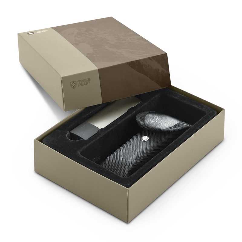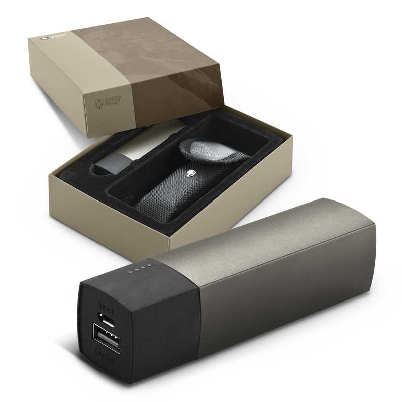 Swiss Peak excels in designing practical lifestyle products and this compact yet powerful 5000mAh power bank with a handy LED power gauge is no exception. The unit has an input of 5V/800mA and an output of 5V/1 Amp which is ideal for charging mobile phones and other compatible electronic devices. Recharging time is 5-6 hours and the lithium ion battery can be recharged over 500 times from any USB port or a mains adaptor. It has its own carry pouch with a belt loop and is beautifully presented in a printed Swiss Peak gift box along with a micro USB cable.